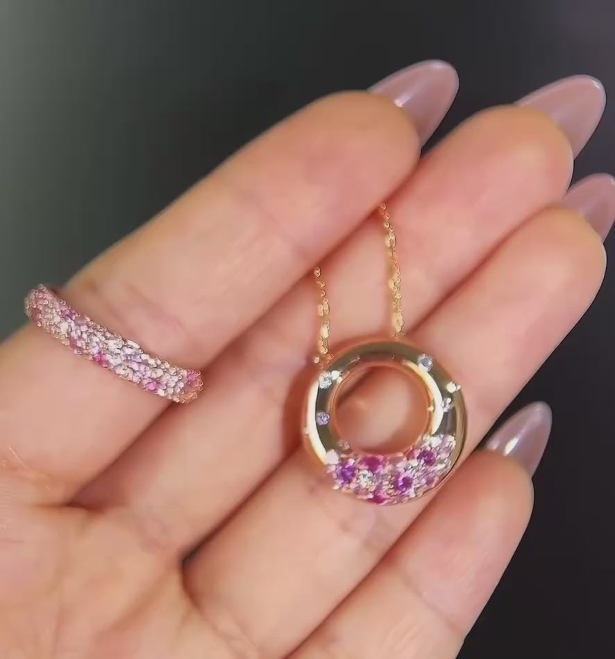 The circular design symbolizes eternity and wholeness — making it a meaningful gift. The Rose gold finish flatters all skin tones and enhances the pastel zircon hues.