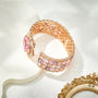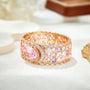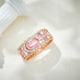 At its heart β a romantic baby-pink oval zircon π crowned with a pavΓ© halo β¨ and arched crescent π β¦ the perfect mix of dreamy opulence & elegance. π