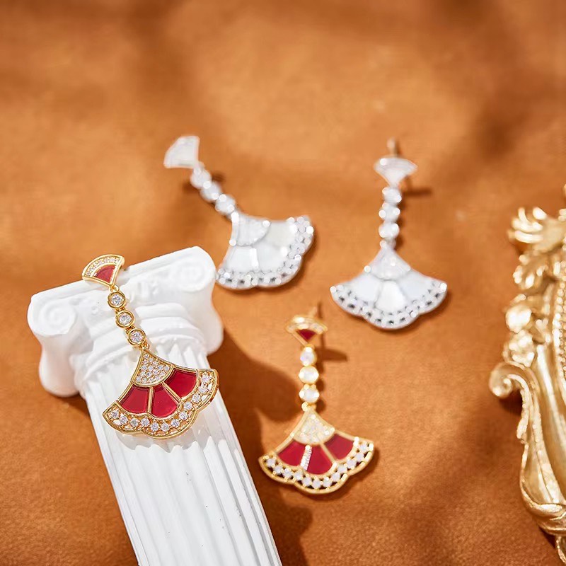 It has a radiant mother-of-pearl inlay for a serene, celestial glow, Zircon-studded scallops add a refined sparkle. Unique fan-shaped design, symbolizing grace and celebration. Perfect for adding understated glamour to both day and evening looks.