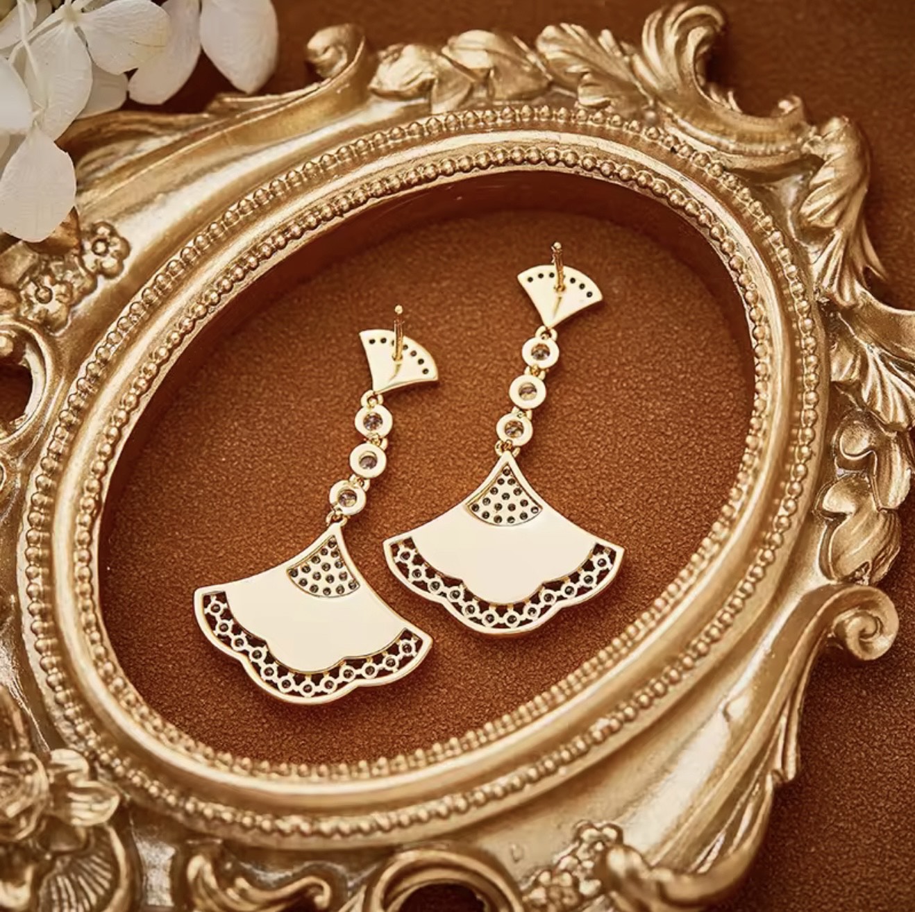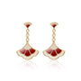 It has a bold Agate red enamel inlay that captures the energy of a sunset, Zircon detailing adds brilliance and sparkle from every angle and a fan-inspired pendant symbolizing joy, radiance, and celebration. A striking design that instantly elevates festive or evening wear.