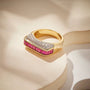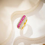 Fuschia Glow Ring dresses your hand in a line of hot pink baguette stones, crowned with a sheet of icy sparkle on rich gold. One glance and it looks like you just stepped out of a campaign shoot soft, expensive, impossible to ignore and and completely unforgettable.