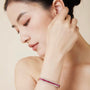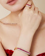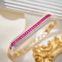 Its sleek, gently twisted silhouette that contours elegantly to the wrist and adds a contemporary edge to traditional elegance.. The central design channel setting for the fuschia stones, framed by pavé zircon panels, creates a perfect harmony of colour and sparkle.