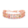 Meet Gaia, a vintage inspired statement bracelet crafted in premium brass and finished in a high shine rose gold plating for that warm, feminine glow. Set with natural tourmaline in a gorgeous mix of blush pink, olive green, honey yellow, and ocean blue tones, it looks like a soft sunset and a garden in one piece. Each stone is framed with micro set zircon accents, giving you that extra sparkle that catches light with every wrist move.