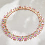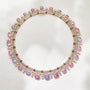 Necklace: Medium-width collar with alternating oval-cut pastels and intricate enamel inlays.