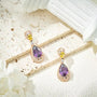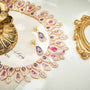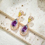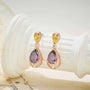 Each stone is set in an intricate, flowing pattern that feels both regal and ethereal, creating a symphony of light with every movement. The matching drop earrings mirror this celestial beauty with a violet centre kissed by a golden-yellow accent, framing the face with soft, luminous elegance.