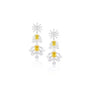 Golden sunrise tones paired with glistening frost — bright, cheerful, and uplifting. Vibrant canary yellow zircons accented by brilliant-cut white sparkles for a fresh, luminous contrast. Expertly plated in white gold, with symmetrical, floral-inspired formations that feel both joyful and refined. Lustrous and eye-catching, with a layered sparkle that captures light from every angle.