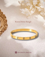 Polished gold bangle accented with evenly spaced round zircons. A clean, modern style that shines with simplicity.