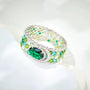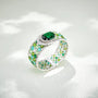 A wide bangle plated in rhodium & luminous white gold, drenched in a kaleidoscope of emerald, mint, peridot & aquamarine zircons 🌊🌿💎.