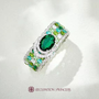 At its heart lies a majestic oval emerald-green zircon 💚 crowned with a pavé halo ✨ and a sculpted crescent 🌙 — radiating pure regality and modern fluidity. 👑